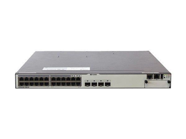 24個10/100/1000Base-T以太網端口,4個復用的千兆SFP Combo,上行支持4×1000Base-X SFP、2×10GE SFP+、4×10GE SFP+插卡
